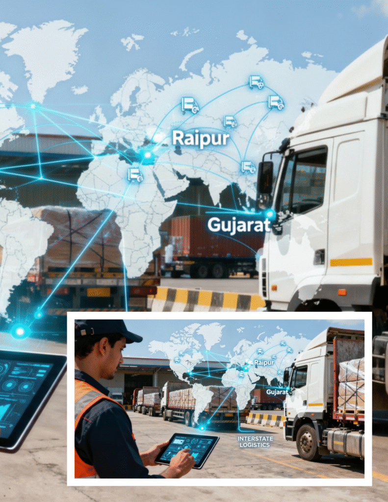 goods transportation forms the heart of our business. We specialize in moving all types of goods safely and efficiently across Raipur, Chhattisgarh, Gujarat, and beyond. Whether you need to ship bulk raw materials, delicate finished products, or heavy machinery, our team and fleet are fully equipped to manage your cargo with utmost care.